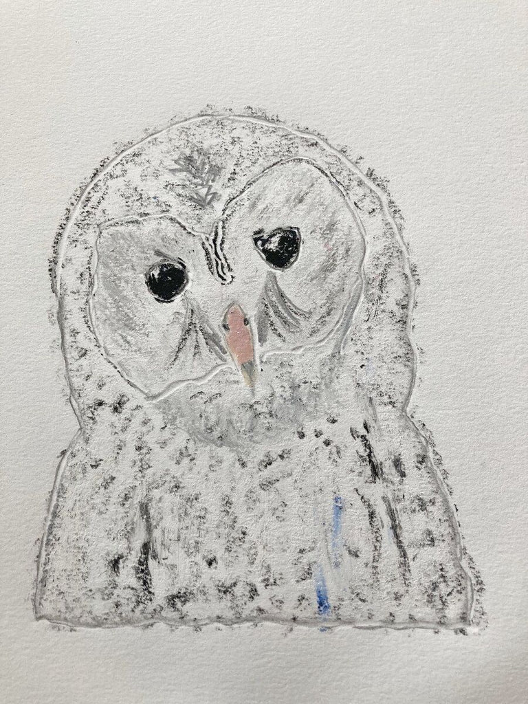 Technik: Buntstift, Wachsmaler und Nagellack auf Bütte